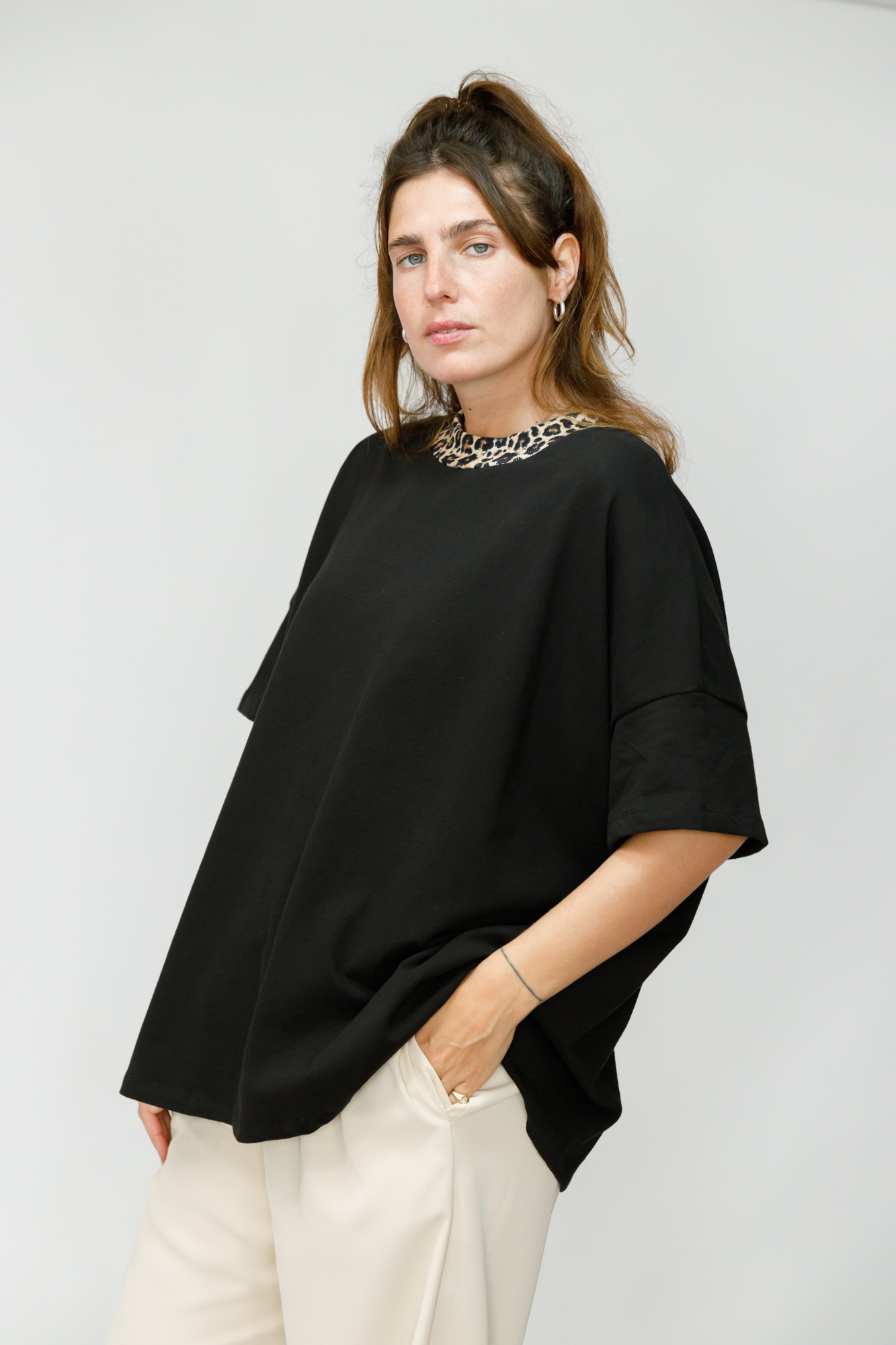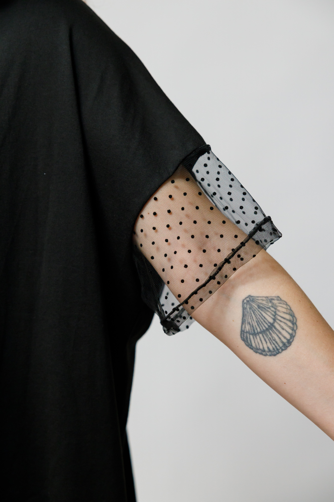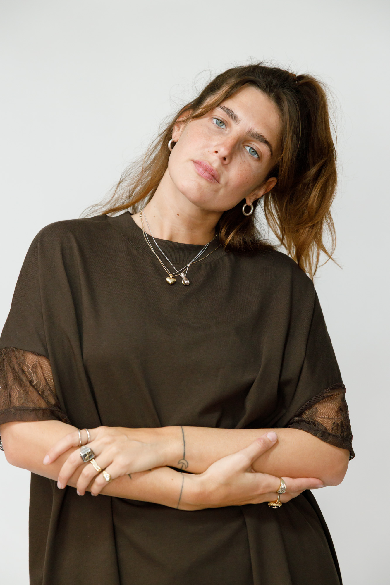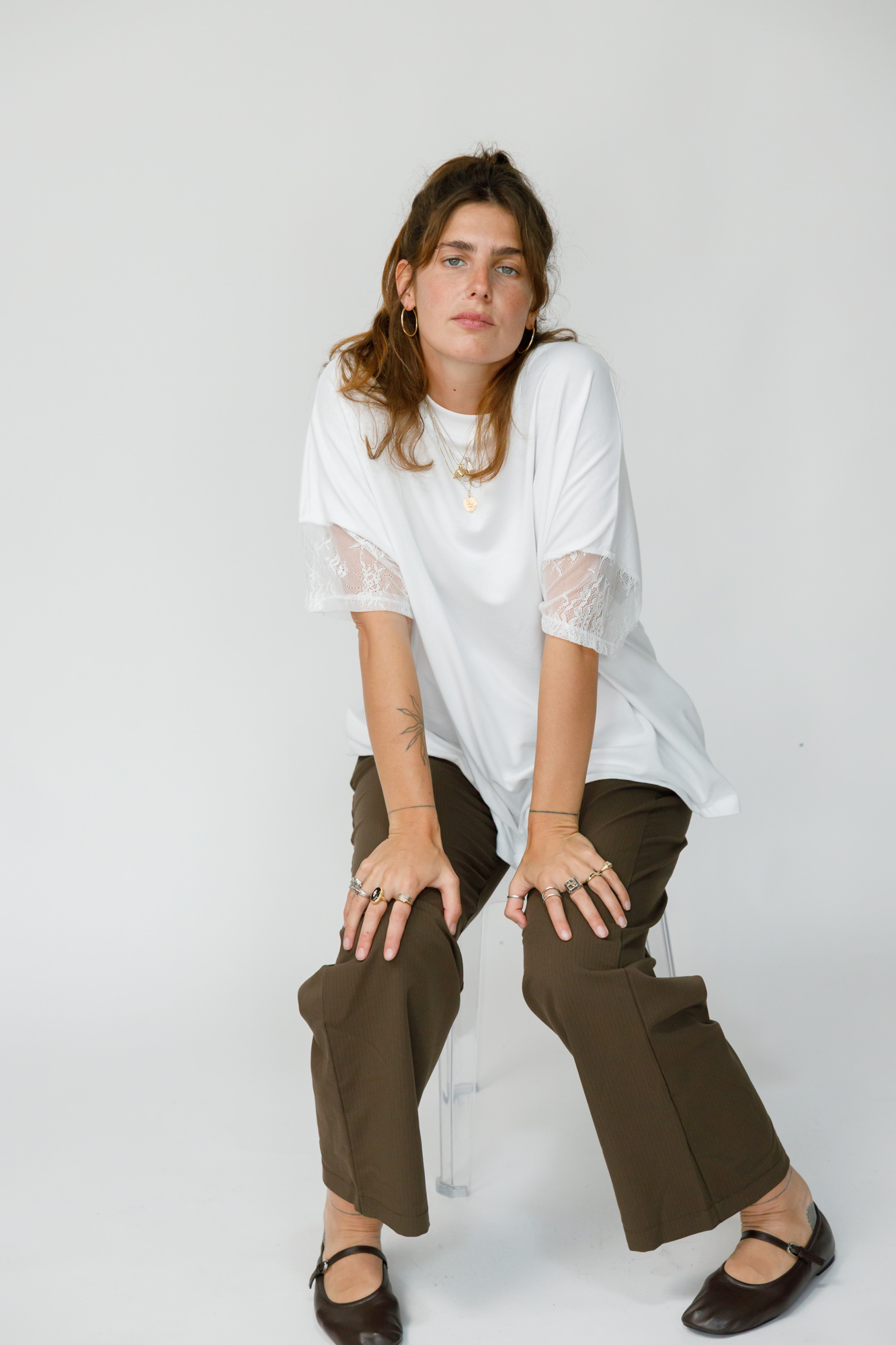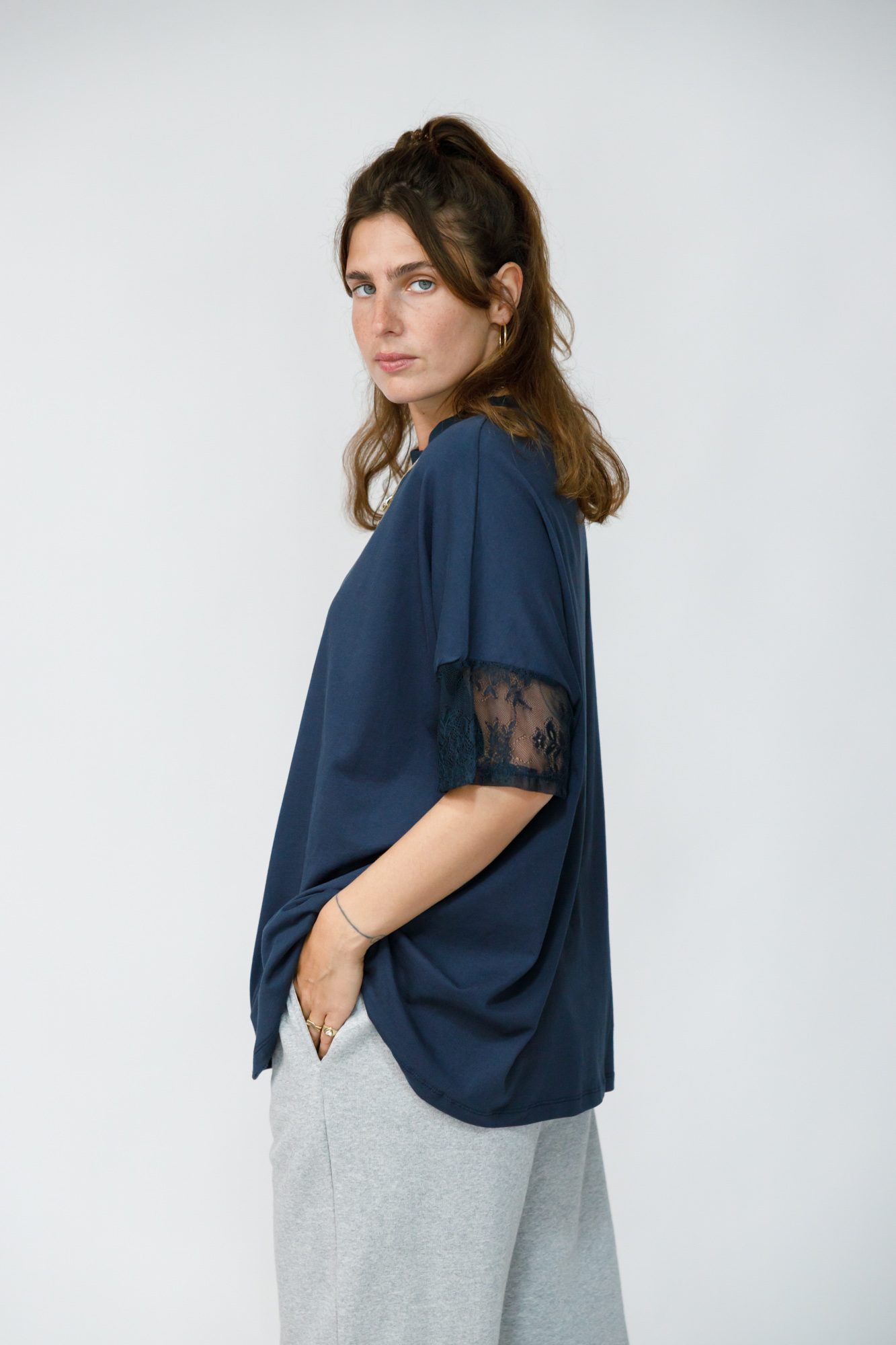 חולצת יוקו שילוב תחרה- כחול נייבי