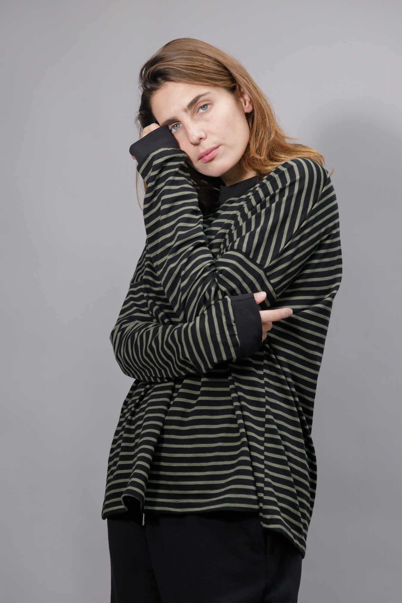 חולצת יוקו- פסים שחור ירוק