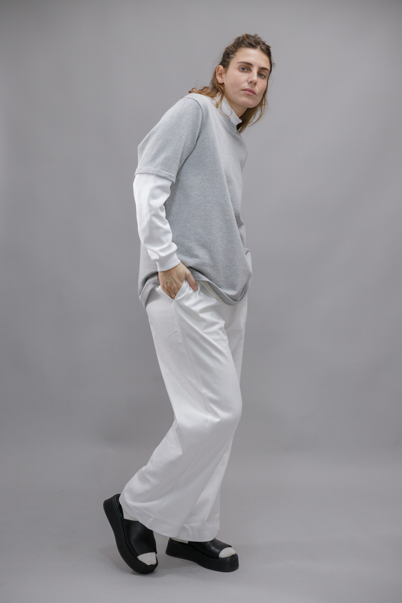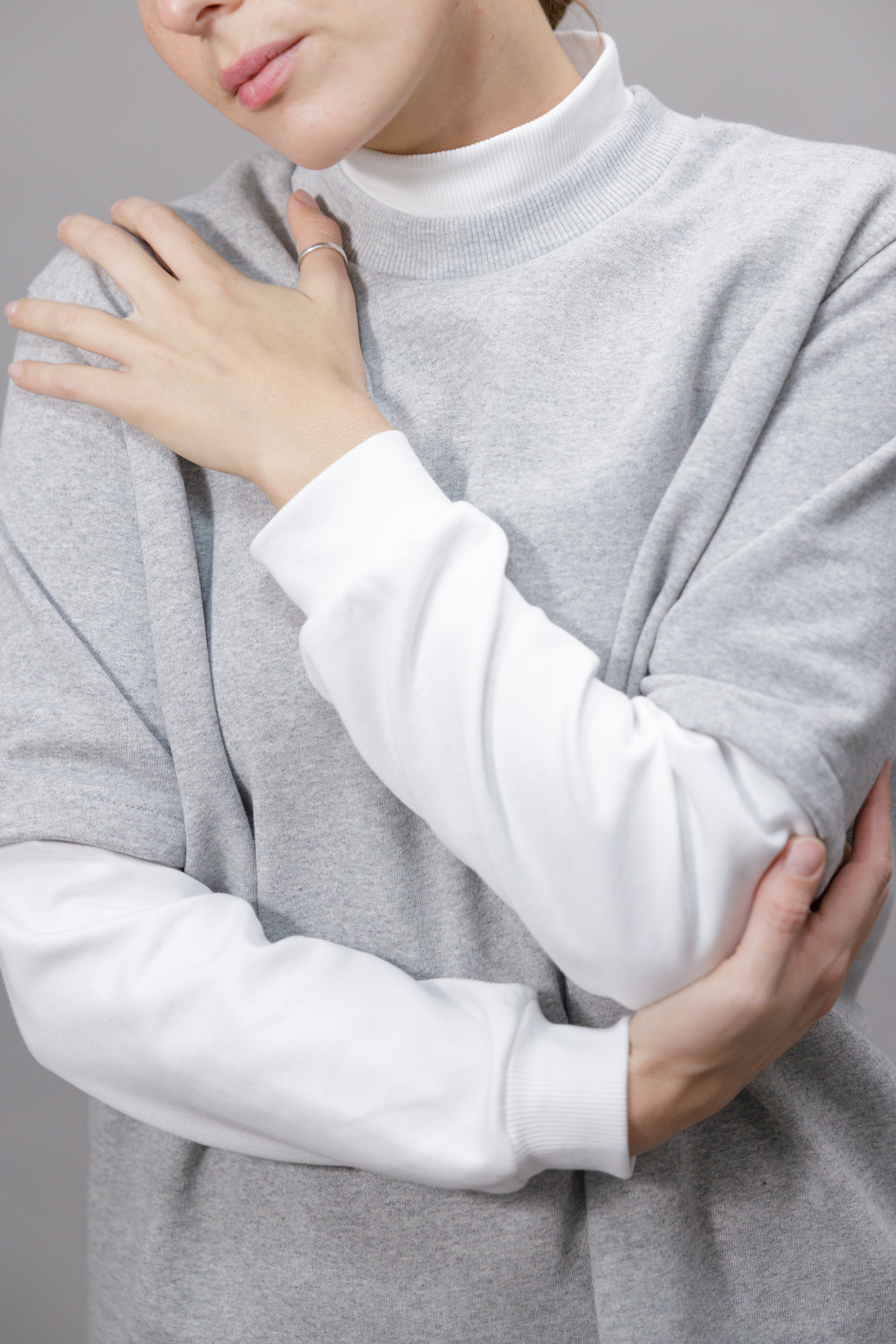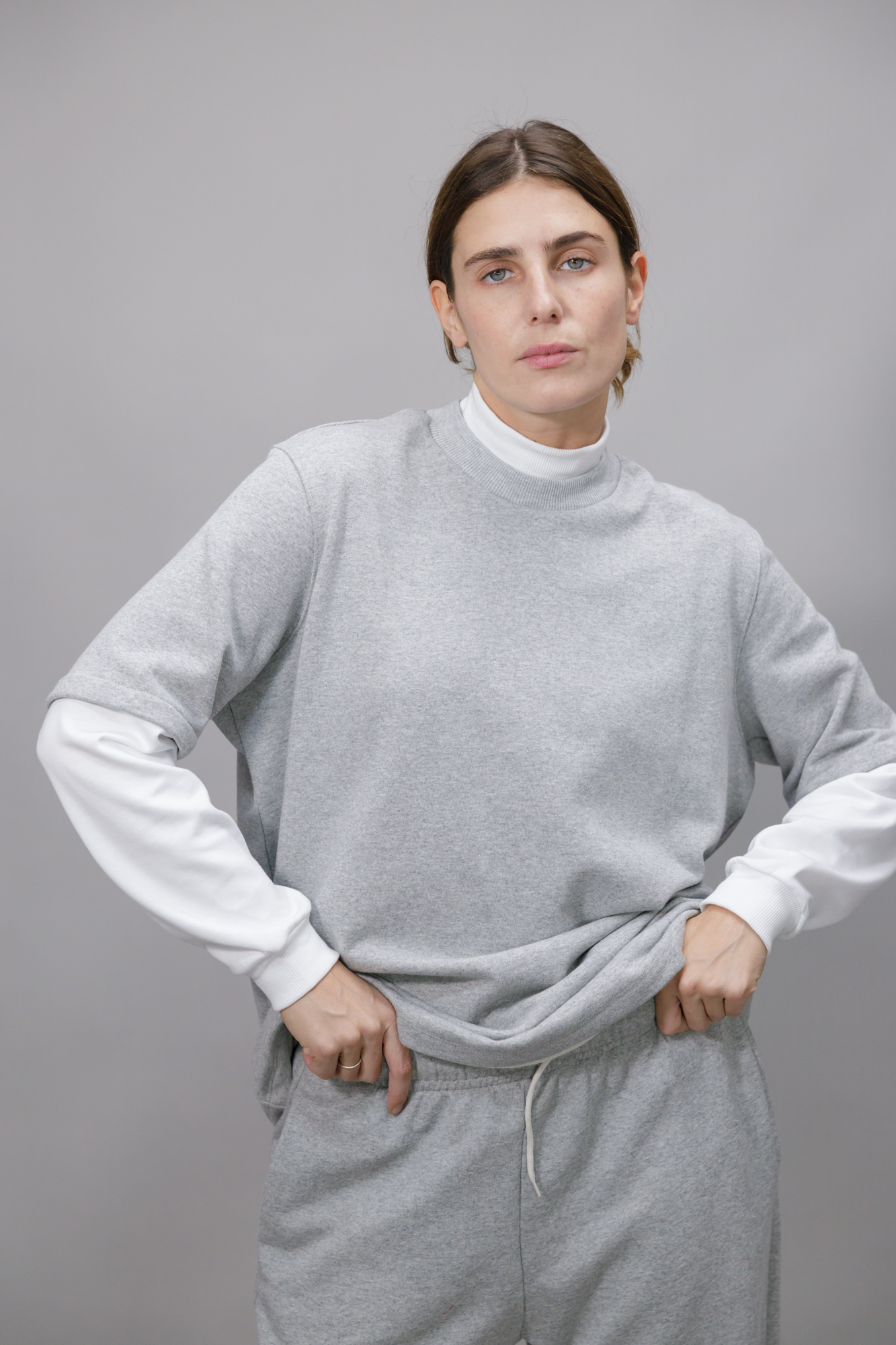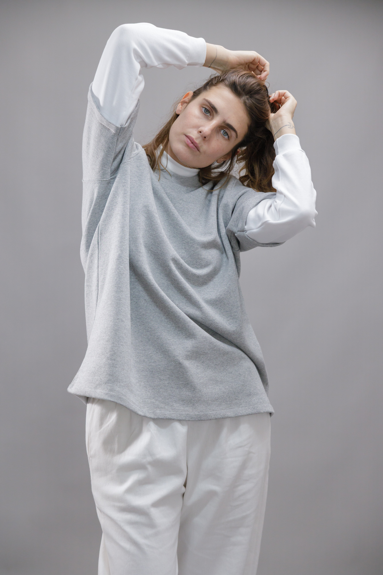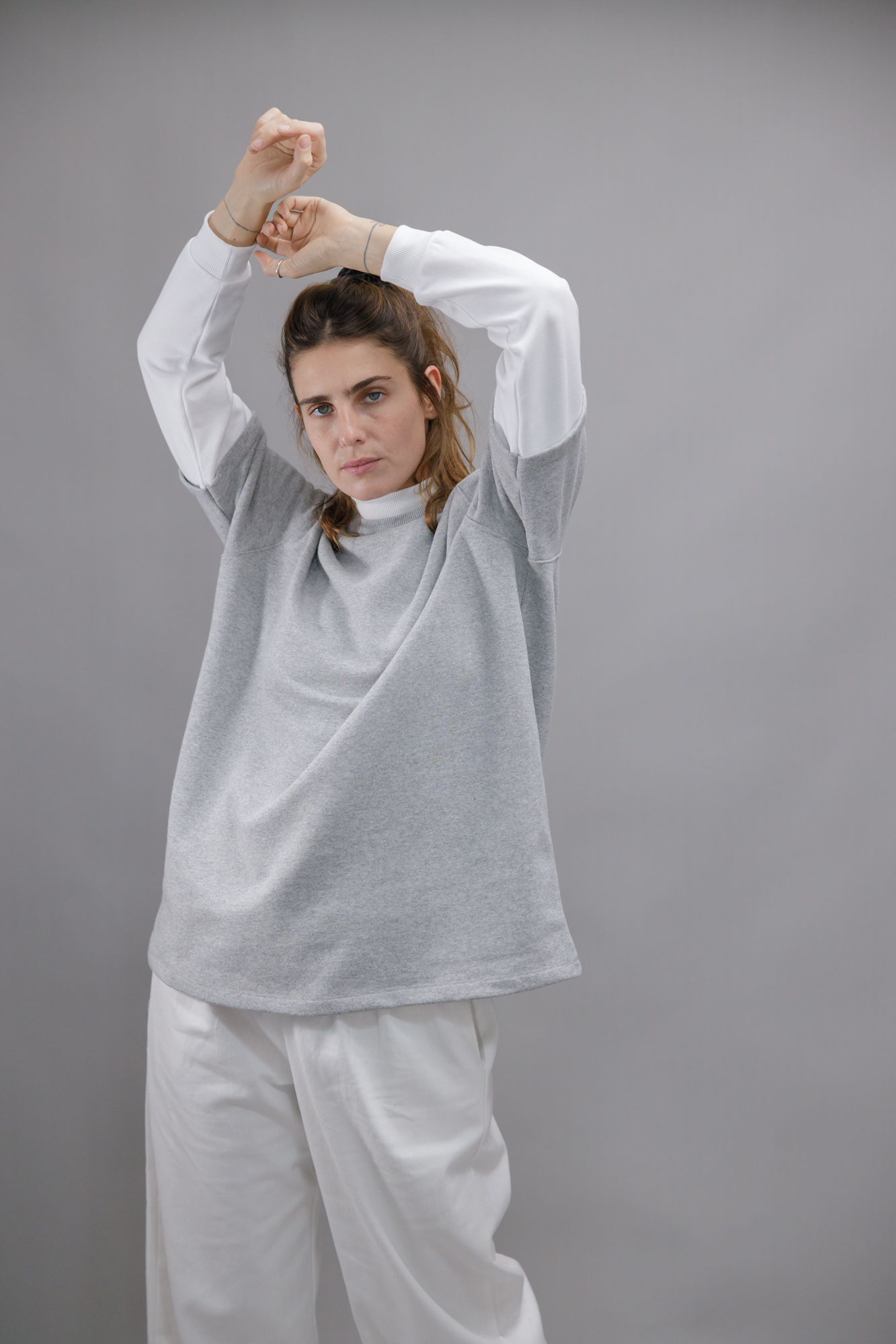 גוף החולצה עשוי פרנץ טרי והשרוולים כותנה וסיומת ריב.