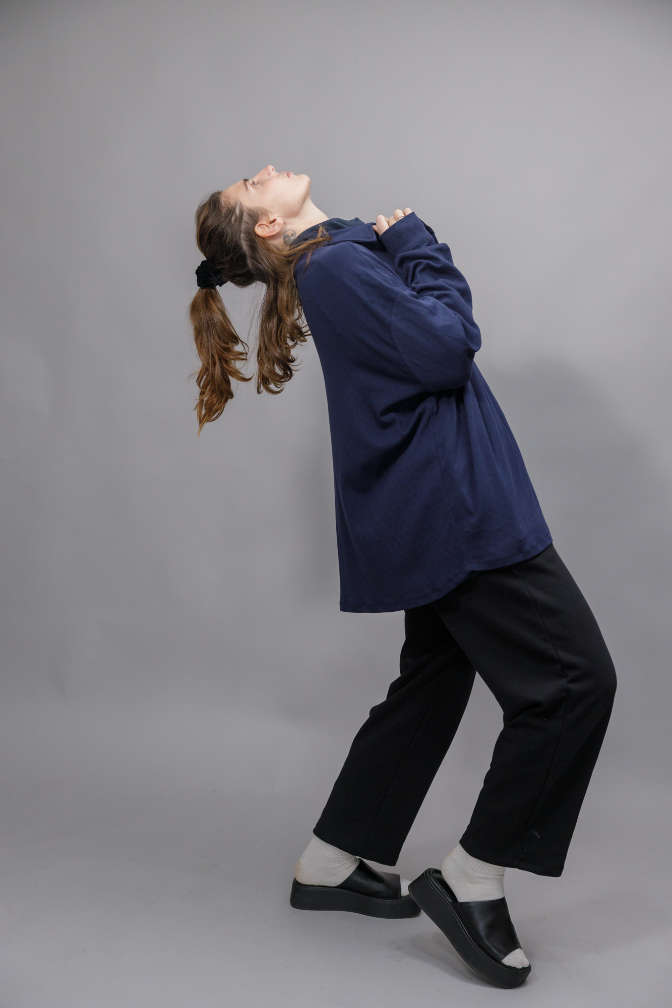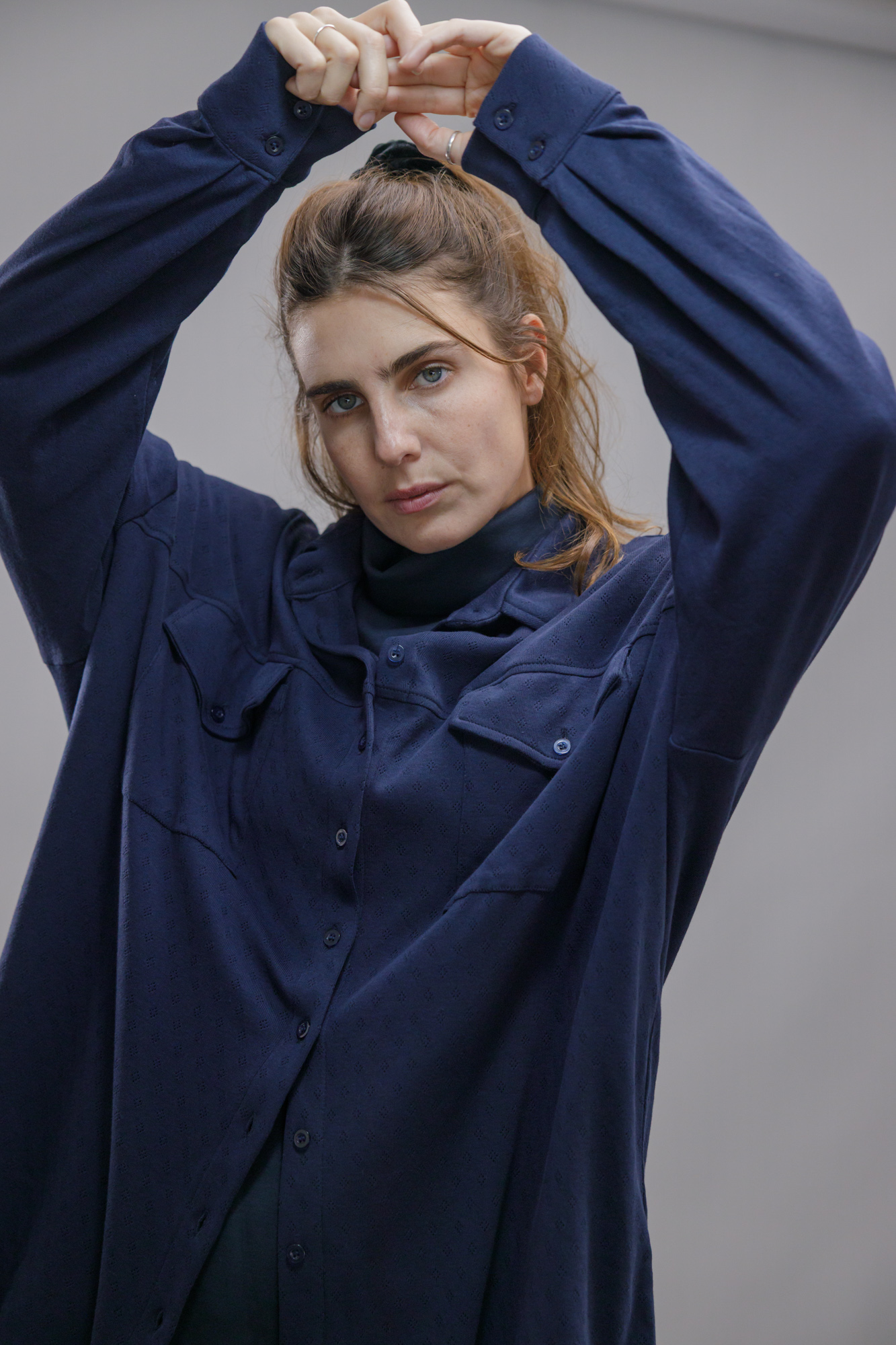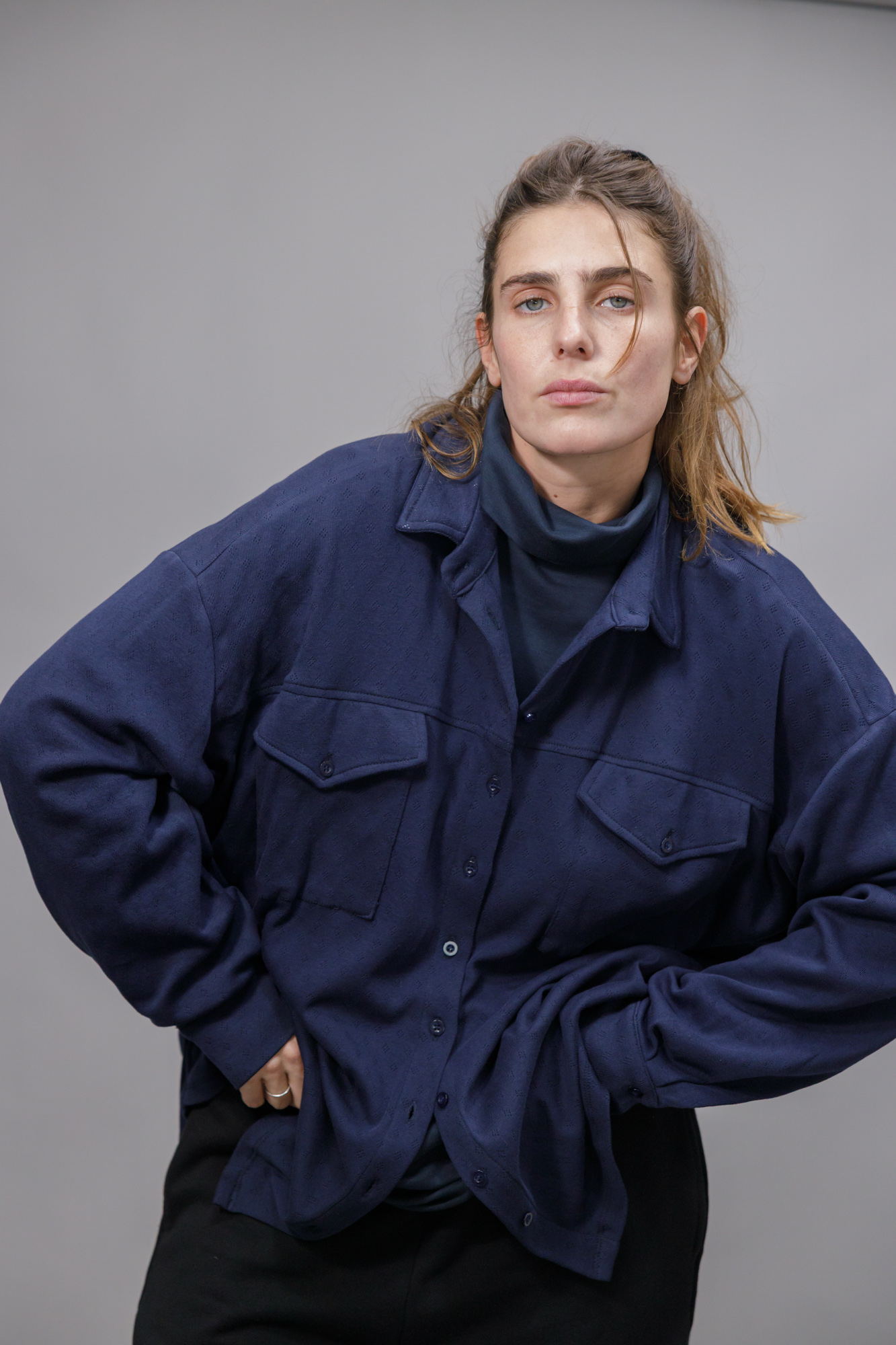 מכופתרת בויפרנד- סריג פוינטל כחול נייבי